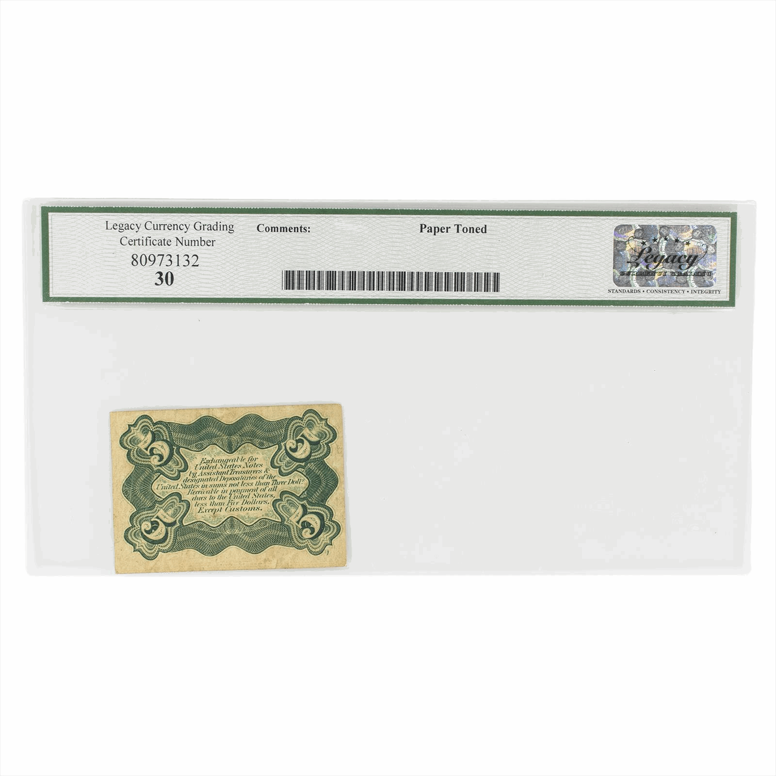 This is a Legacy graded note. You will receive the note pictured. You are purchasing a Fractional US Currency Note graded Legacy Very Fine 30. This is an excellent note to add to your collection.